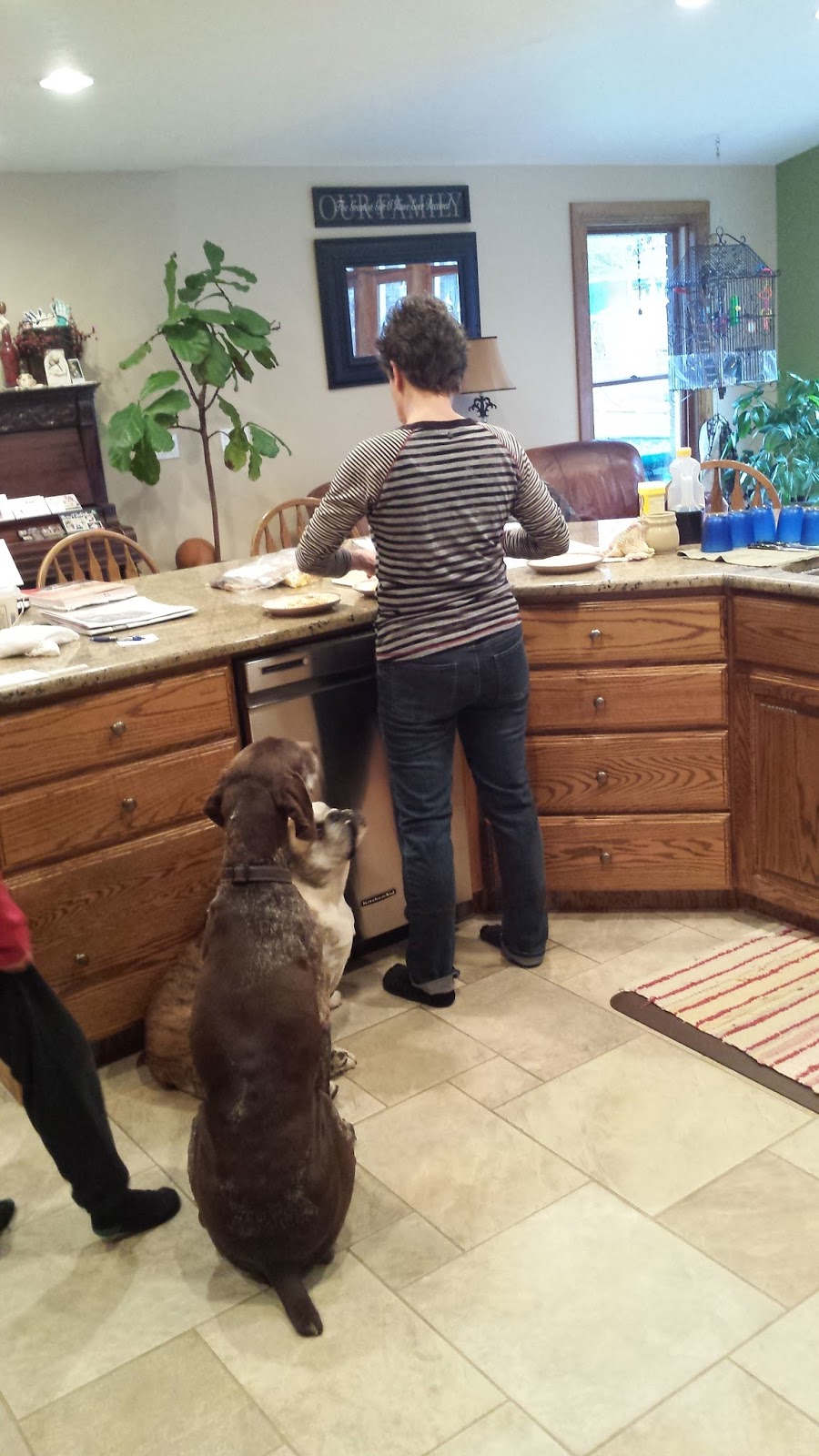 My mom spoils her animals, and her kids, rotten. These dogs were sitting patiently waiting for their cooked eggs. Pathetic.